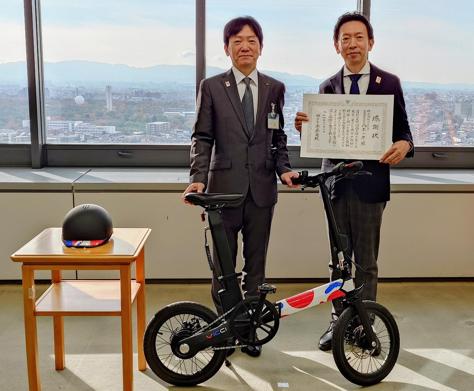 2026年2月5日、大阪府茨木土木事務所に、大阪・関西万博仕様の電動アシスト自転車「VICCI / V-01」1台と、同仕様のヘルメット(SAFETY LABS / E-PATH) 1個を寄贈いたしました。