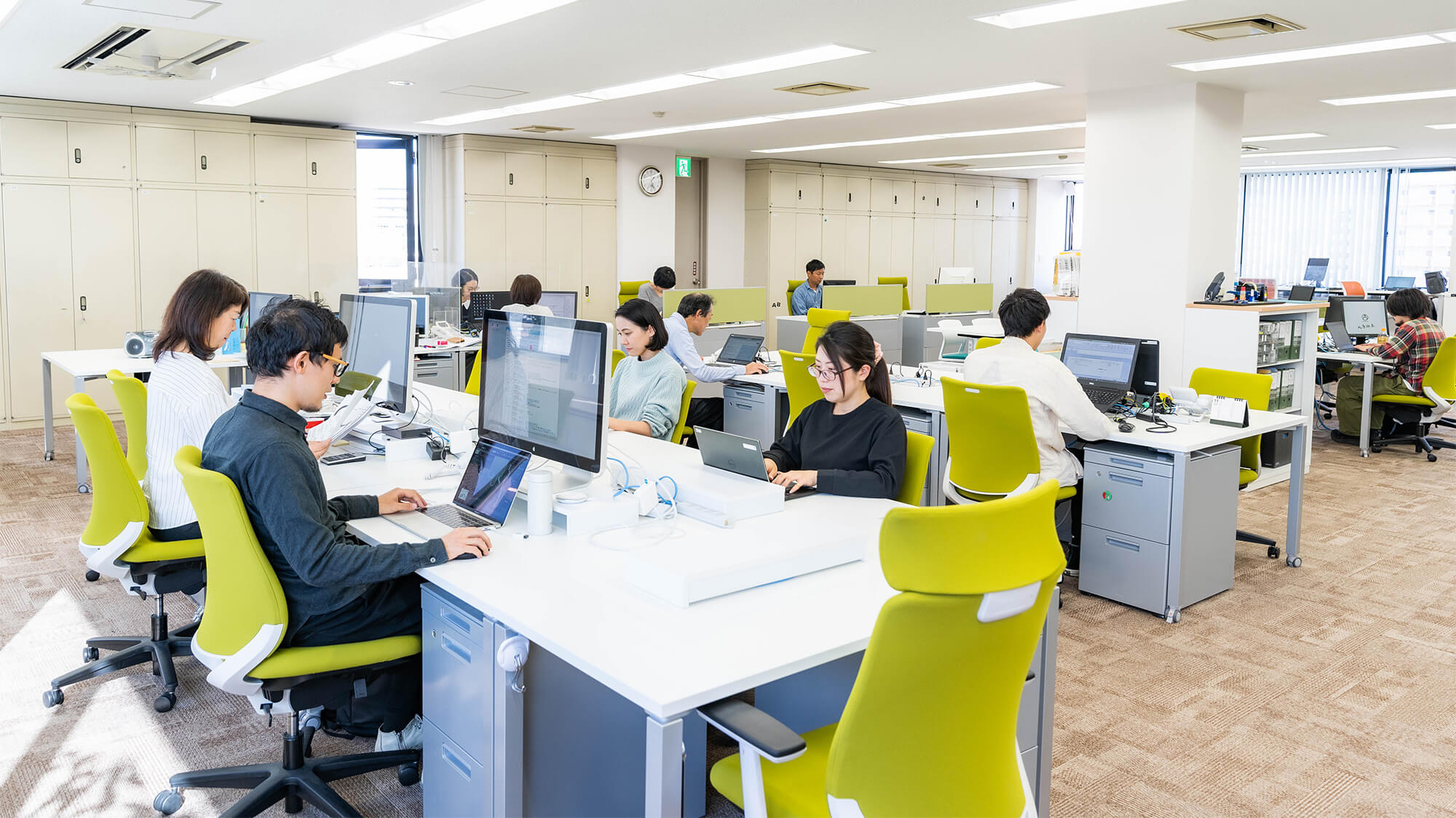 全座席数の約40%をフリーアドレスとして運用しています。その日に働く場所を選び、いつでもだれとでもコミュニケーションすることで斬新なアイデアが生まれ、これが未来を切り開く原動力になると考えています。